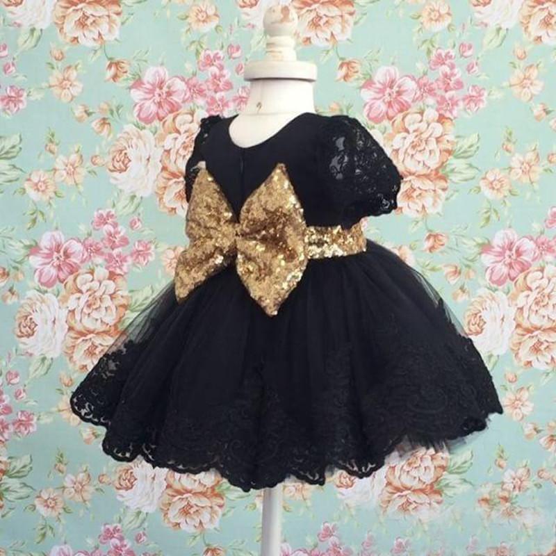 2018 Black Gold Seqins Bow Flower Girl Dresses Tea Length Short Sleeves Baby Infant Dress Girls Birt On Luulla